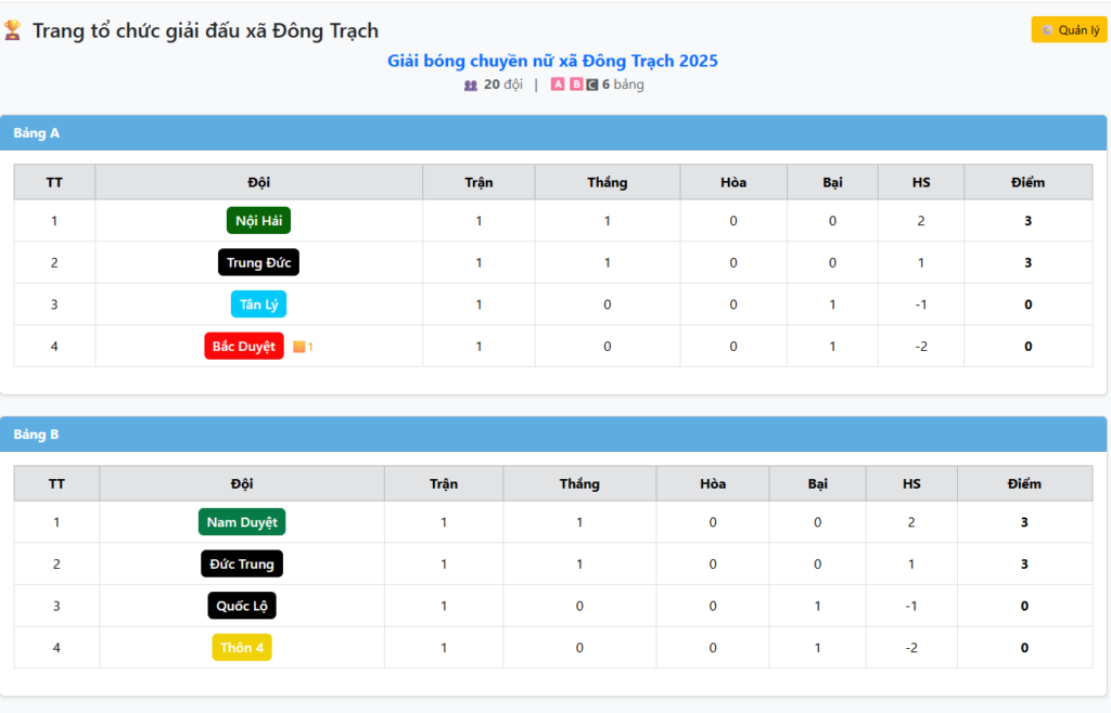 Đây là webiste quản lý các giải thi đấu vừa và nhỏ do mình tự phát triển, có giao diện người xem và giao diện quản lý.