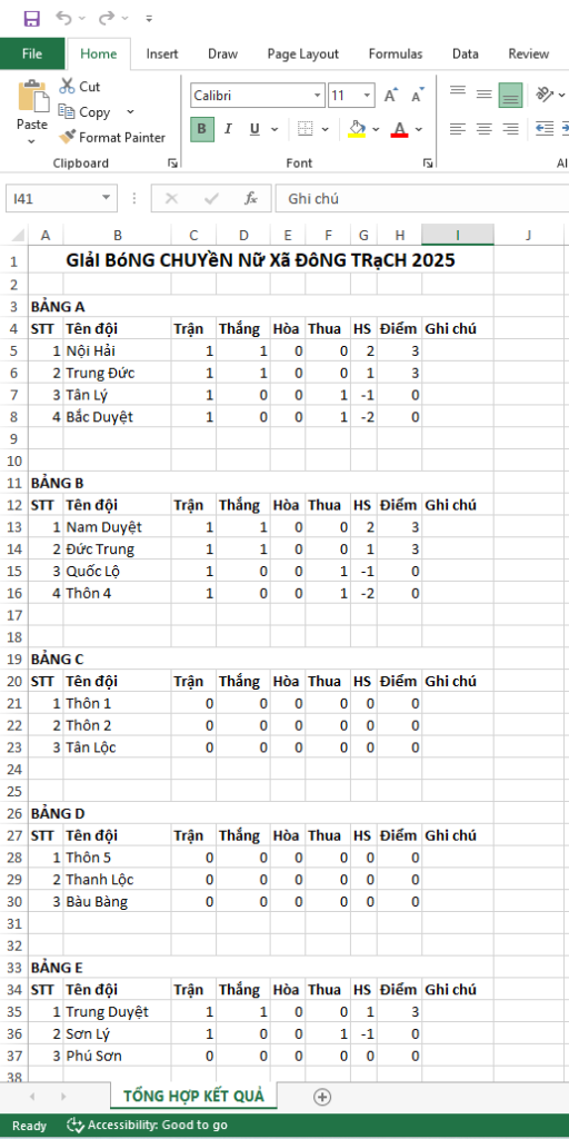 Thống kê đầy đủ tỉ số (nếu bóng chuyền tự hiện tỉ số các séc)