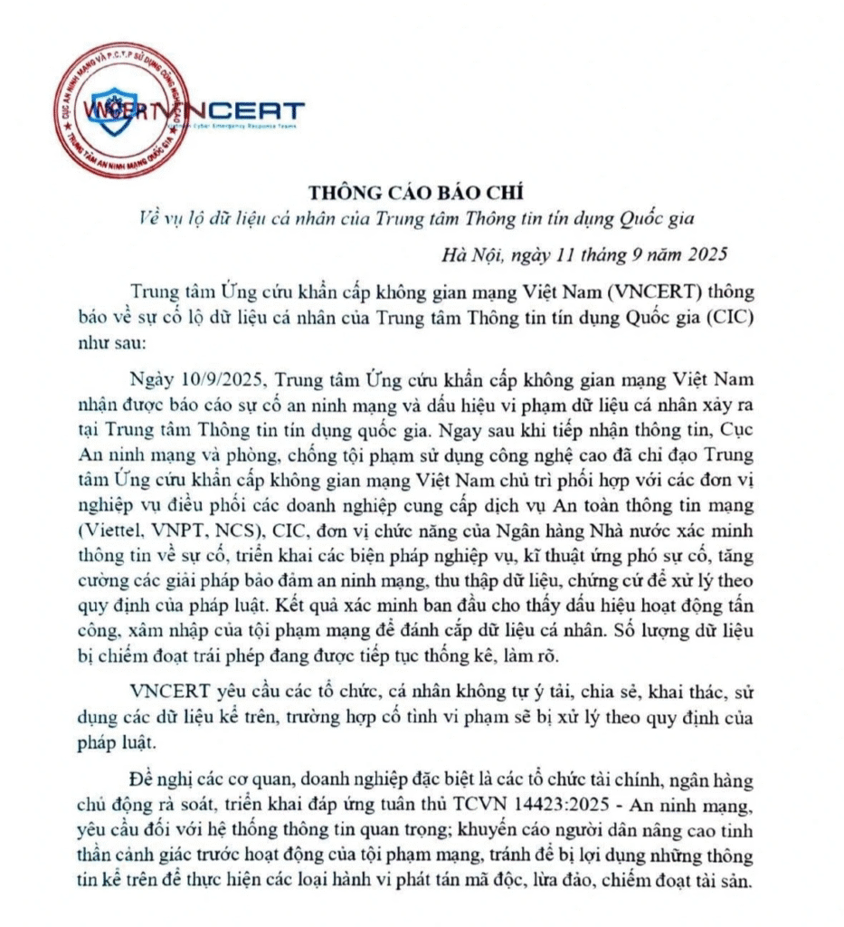 Số lượng dữ liệu bị chiếm đoạt trái phép đang được tiếp tục thống kê, làm rõ.